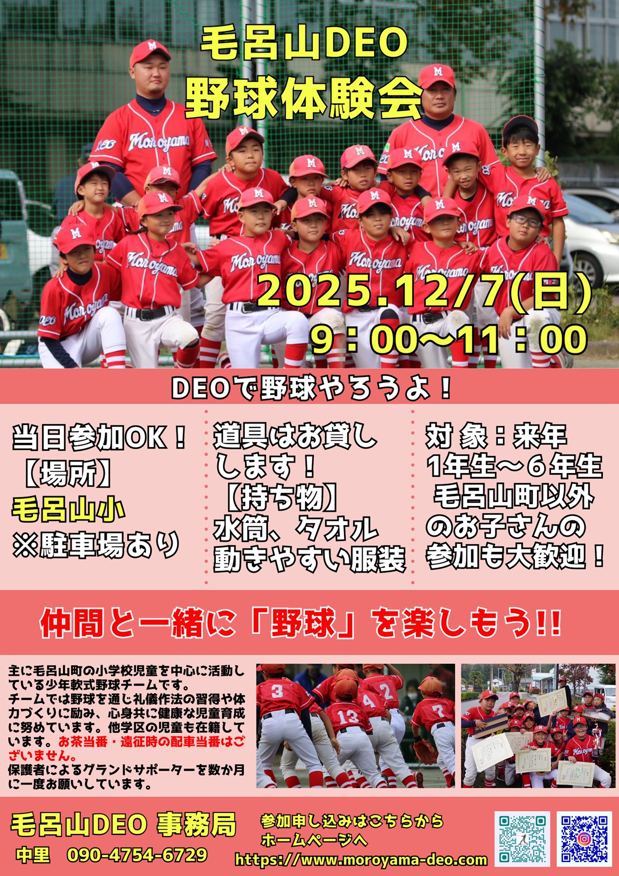 下記の日程で野球体験会を開催します。